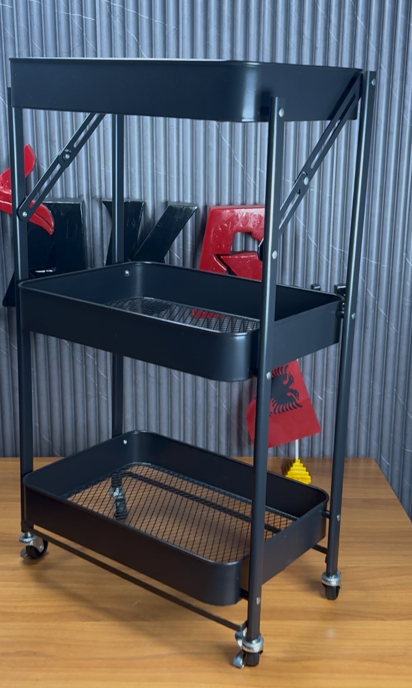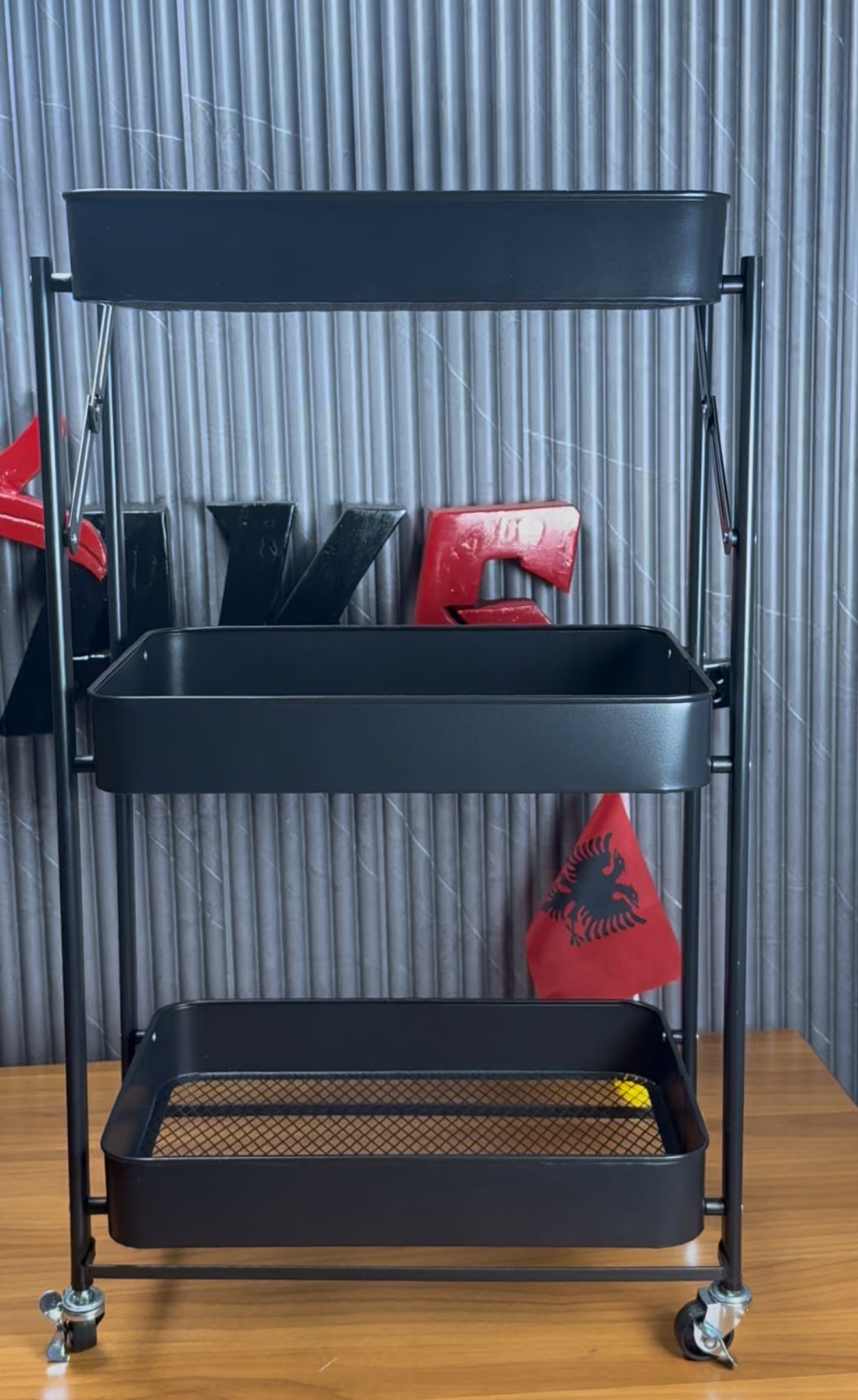 Stop rremujes !! Zgjidhja eshte organizuesi metalik super i bollshem ne permasa: 77x45x29cm, ku ju mund te vendosni cdo gje duke nisur nga peshqire, perimet , detergjente, ushqime, ilace, apo cfaredo tjeter,, kapacitet 45 kg , NGJYRA ZEZE/BARDHE, i levizshem me rrota, portativ me HAPJE/MBYLLJE,sigurese ne rrota per te mos levizur, TELEFONO TANI🏃🏃🏃🏃